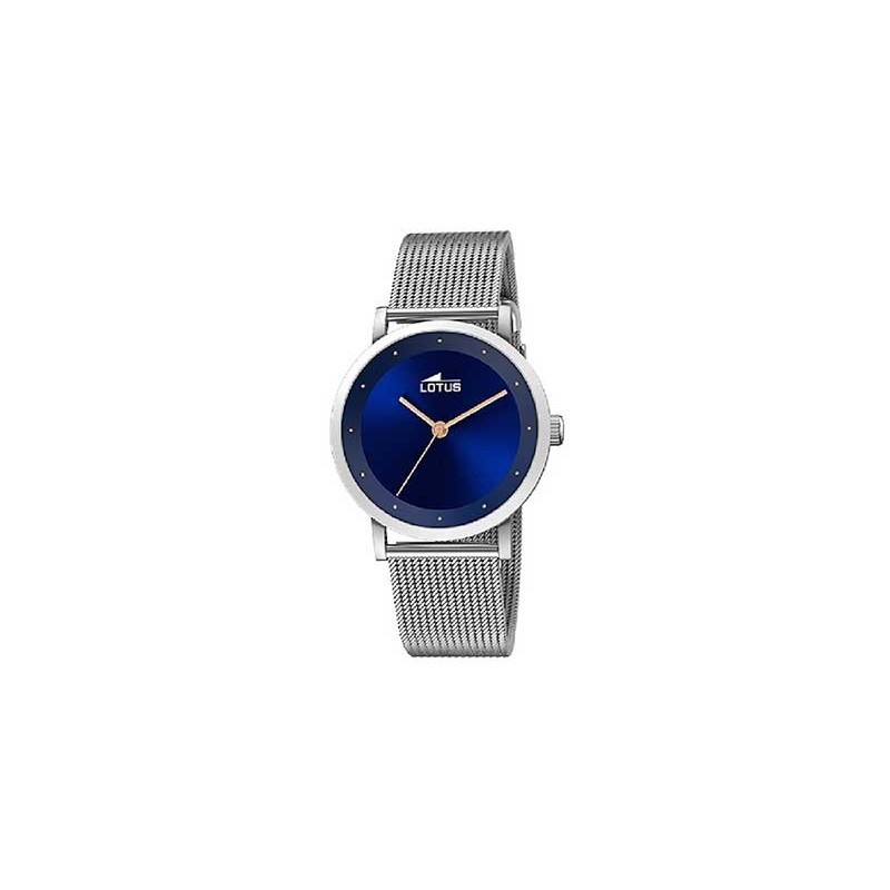 Reloj de la marca Lotus con referencia 18790/2 de sra. fabricado en acero, tamaño de caja aprox. 35mm, esfera color azul, correa tipo malla milanesa, cristal mineral.