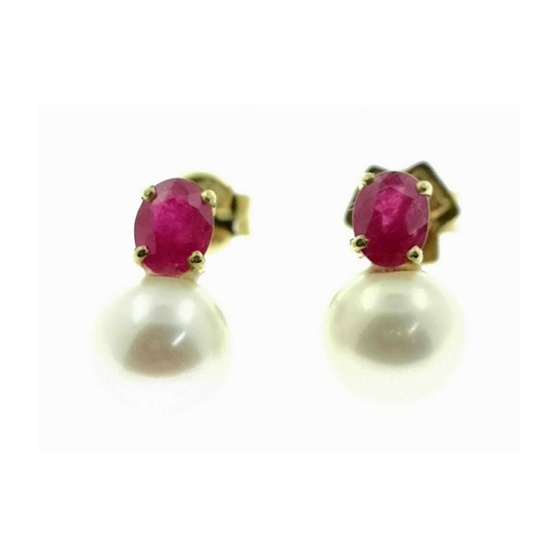 Pendienes oro perla y rubi cierre presion