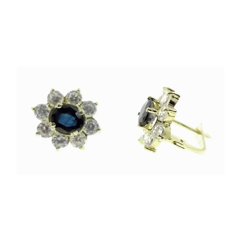 Pendientes oro roseton zafiro con circonitas cierre ballesta